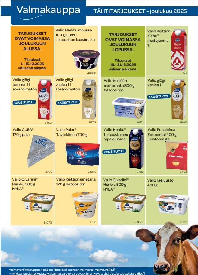 lisäksi joulukuussa tarjouksessa (klikkaa linkkiä)TERVETULOA VALMAKAUPOILLE!
