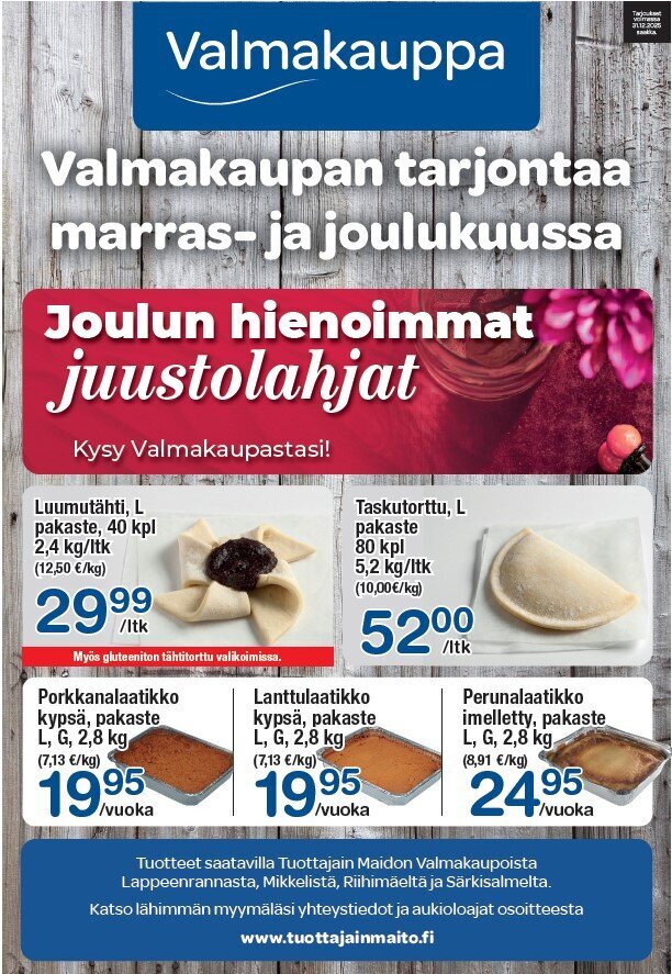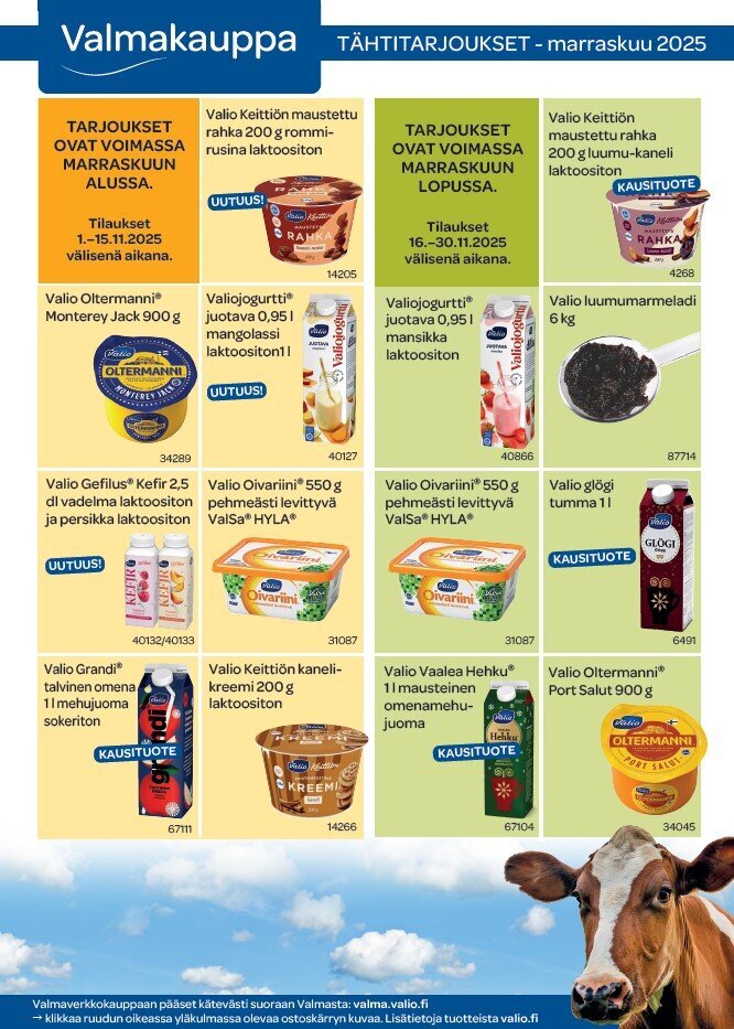lisäksi marraskuussa tarjouksessa (klikkaa linkkiä)TERVETULOA VALMAKAUPOILLE!